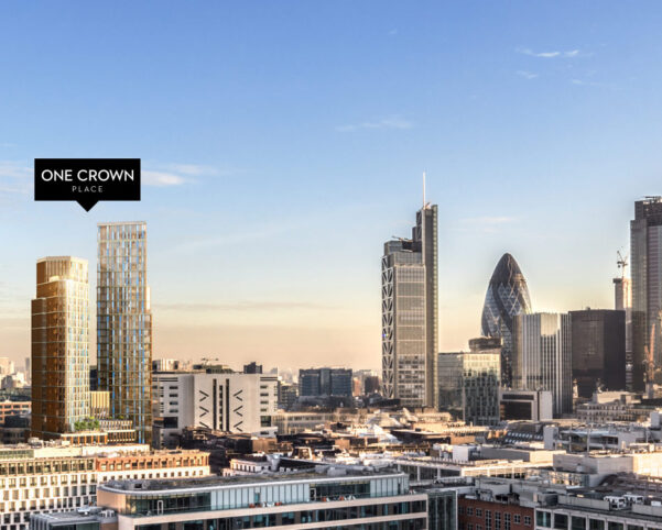One Crown Place has now joined one of the world’s most recognisable skylines. Home to 246 new apartments, 15,500 sq m high-quality office space with a variety of retail space at ground level. The boutique hotel and members’ club occupy the elegant row of Georgian terraces on Sun Street.
